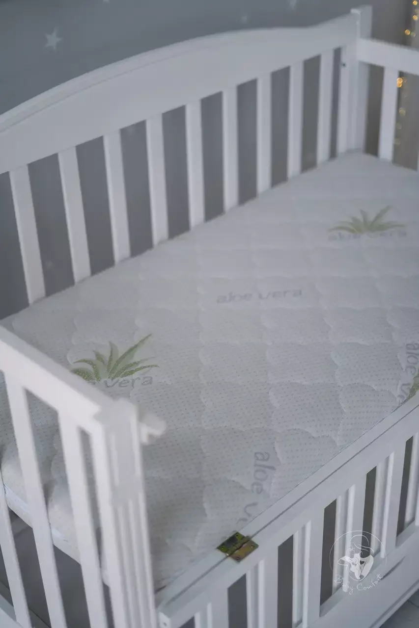 Час сну - самий дорогоцінний час для дитини, адже саме уві сні новонароджений малюк набирається сил, зростає. Матрац Aloe Vera призначений для малюків від народження до 3 років, створений спеціально для правильного формування незміцнілого хребта дитини. Чохол матраца пошитий з стрейч-жаккарда, переплетення ниток тканини зроблено для найбільшою мірою циркуляції повітря, також його можна легко зняти для прання. Всередині матрац складається з 3 шарів: шари кокосового волокна, первинного щільного пінополіуретану і ще одного шару кокосового волокна. Тут кокосова койра служить чудовою опорою для хребта малюка, є повітропроникною і гіпоалергенною. Пінополіуретан - надає матрацу додаткову пружність. Все продумано до дрібниць - для комфорту і здоров'я Вашого малюка.
