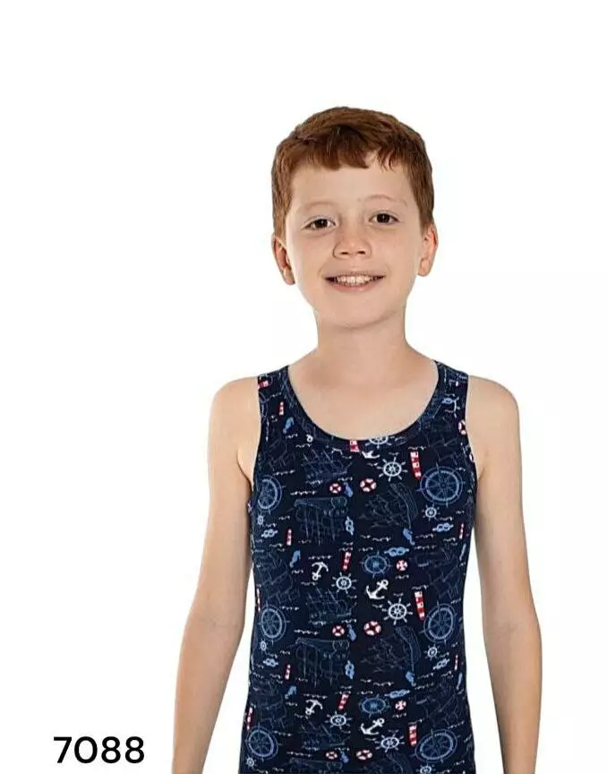 Майка дитяча для хлопчиків виконана з м'якого та приємного до тіла трикотажу. Модель має класичний крій із широкими бретелями та круглою горловиною,що забезпечує комфорт у щоденному носінні.