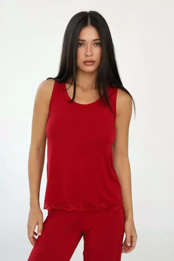 Насичений бордовий колір – це колір елегантності, жіночності та впевненості. Він створює атмосферу затишку, додаючи нотку розкоші та вишуканості, що робить майку особливою. Бордовий колір підійде для будь-якого типу шкіри, підкреслюючи природну красу, та виглядає привабливо і вишукано, що надає образу завершеності. Такий відтінок легко комбінується з іншими елементами домашнього гардеробу – піжамними шортами, штанами або затишним халатом, створюючи стильний та гармонійний ансамбль.