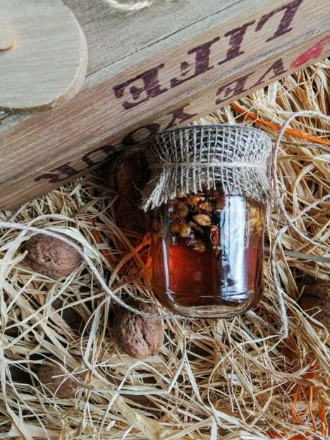 Натуральный пчелиный мед с грецкими орехами представляет собой исключительно полезный и питательный продукт, незаменим во время длительных постов, в вегетарианской диете, во время изнурительных физических нагрузок (альпинизм, экстремальный туризм).