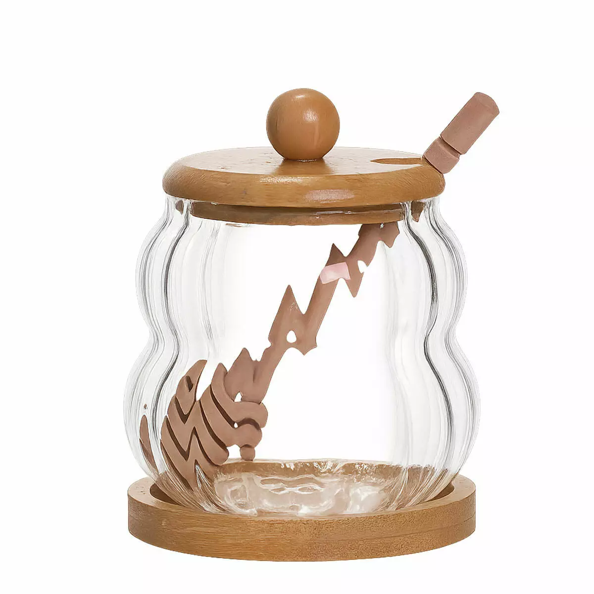 Скляна медовниця з бамбуковою кришкою та підставкою поєднує естетику, зручність і практичність. Прозоре скло дозволяє бачити колір і густину меду, а натуральний бамбук додає теплоти та природного вигляду. Конструкція з підставкою забезпечує стабільність і захист поверхні від липких крапель.