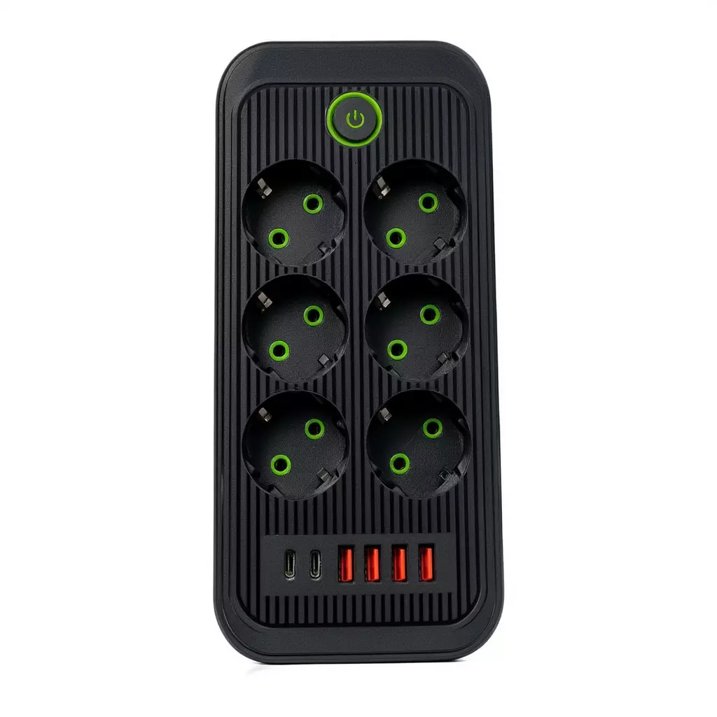Мережевий фільтр-подовжувач із п’ятьма розетками та USB-портами дозволяє організувати підключення кількох пристроїв в одному місці. Формат 6 розеток + 4 USB-A +2 USB Type-C підходить для одночасного живлення побутової техніки та заряджання мобільних гаджетів без додаткових адаптерів. Це рішення зручно використовувати вдома, в офісі або навчальному просторі, де важливо оптимізувати доступ до електромережі.