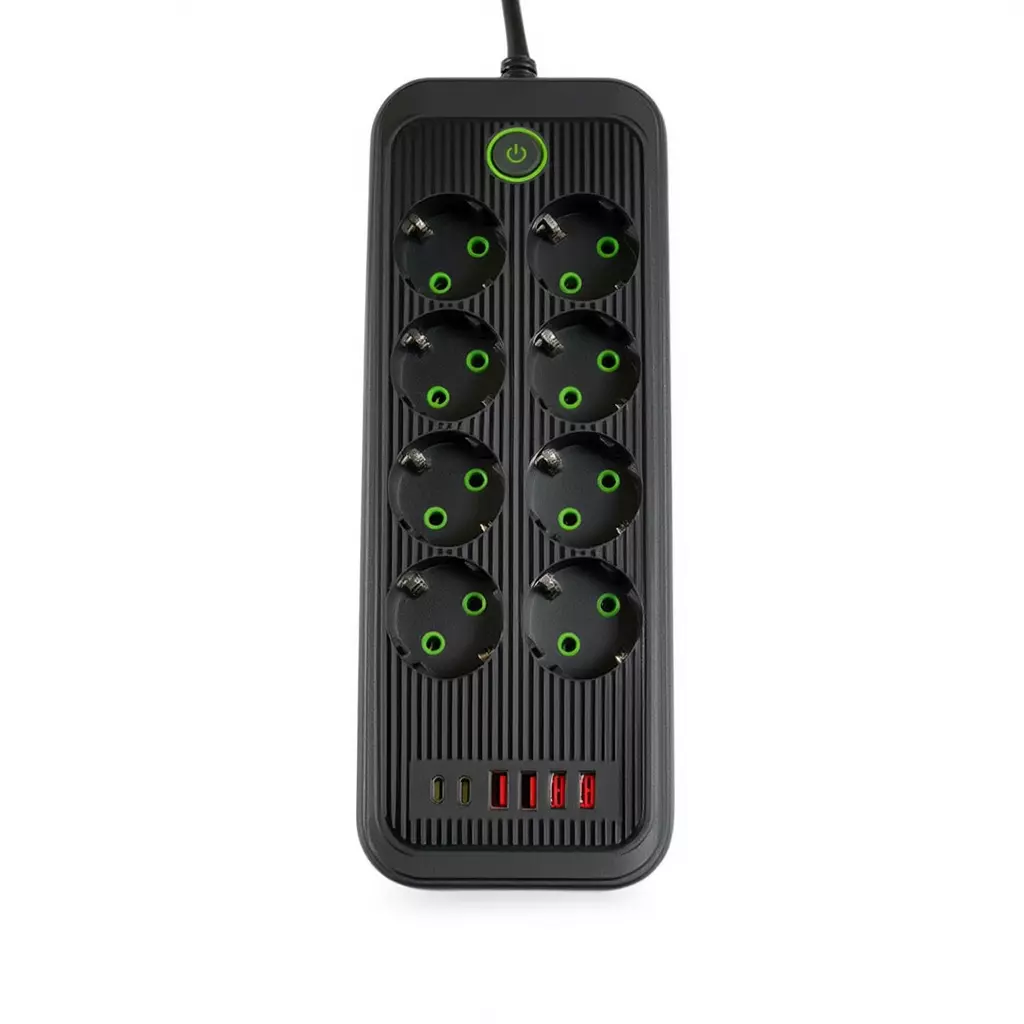 Мережевий фільтр-подовжувач із п’ятьма розетками та USB-портами дозволяє організувати підключення кількох пристроїв в одному місці. Формат 8 розеток + 4 USB-A +2 USB Type-C підходить для одночасного живлення побутової техніки та заряджання мобільних гаджетів без додаткових адаптерів. Це рішення зручно використовувати вдома, в офісі або навчальному просторі, де важливо оптимізувати доступ до електромережі.
