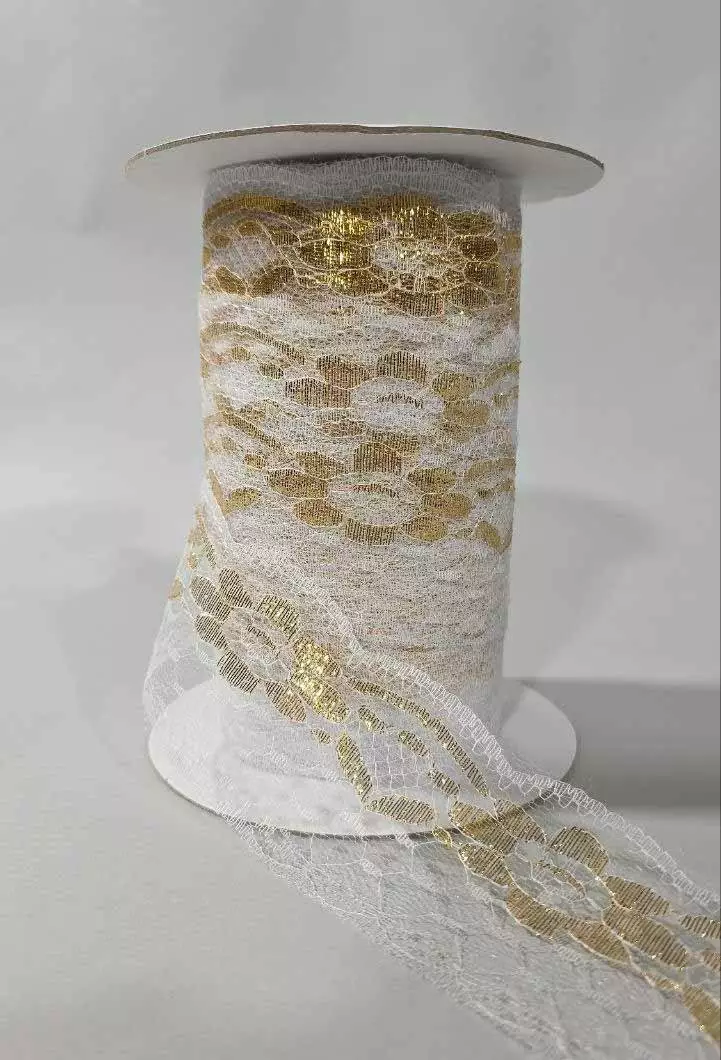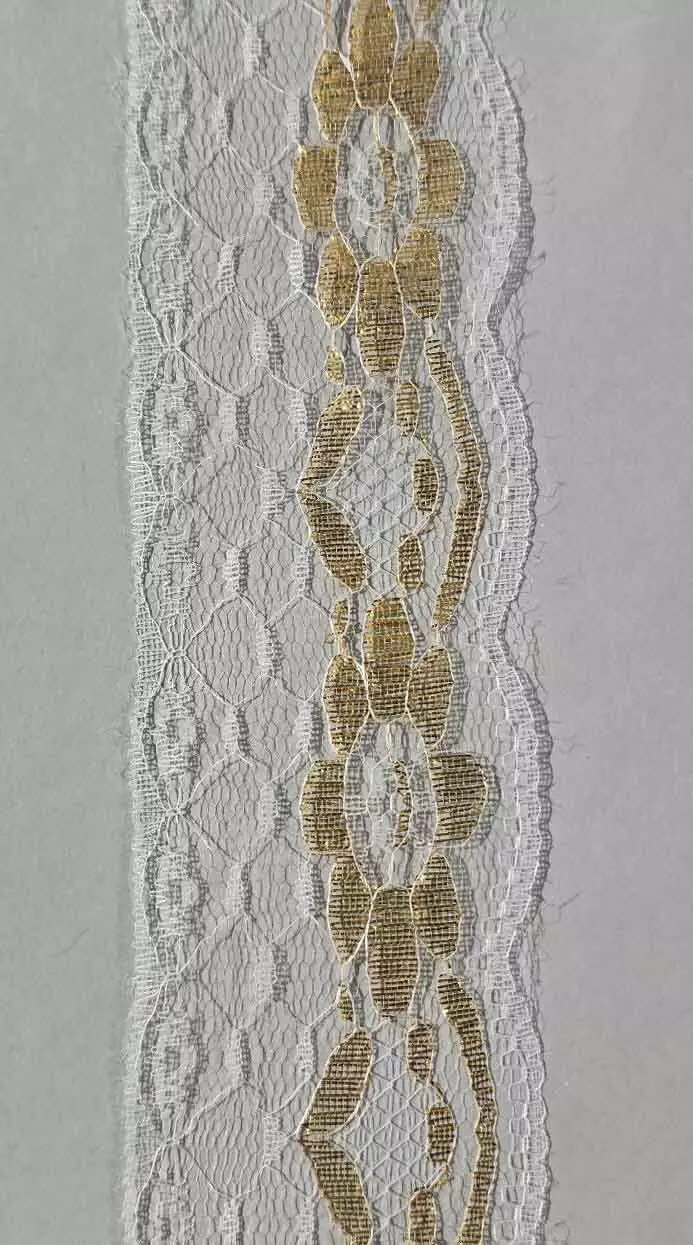 Мереживо з люрексом ширина 6см. Мереживо застосовується для декорування швейної ритуальної продукції.