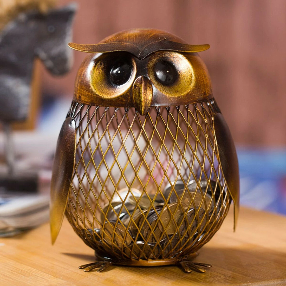 Металева скарбничка для грошей Сова RESTEQ 103х136 мм. Скарбничка Совушка метал. Декоративна скарбничка Совушка