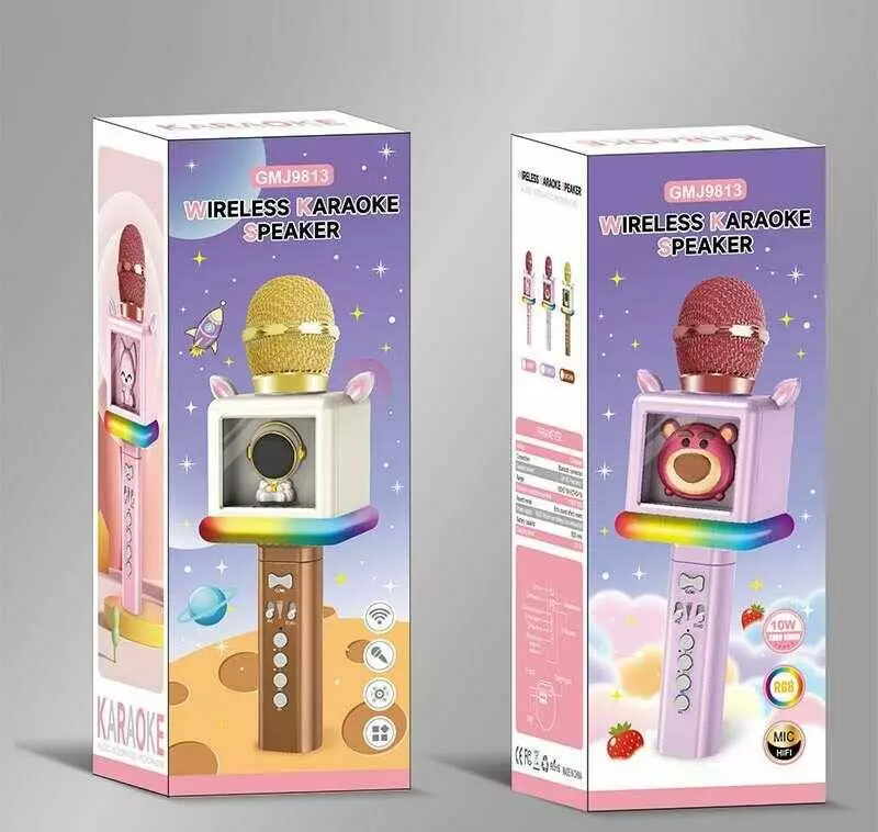 Мікрофон GMJ 9813 (48) 3 види, підсвічування, зміна голосу, регулювання гучності, Bluetooth, слот для TF-карти,слот USB,регулювання відлуння,в коробці
