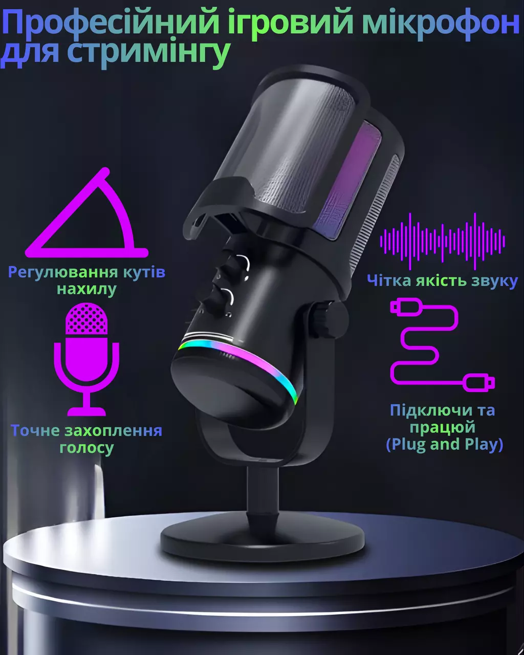 стримінгу, запису голосу, подкастингу та геймінгу. Мікрофон