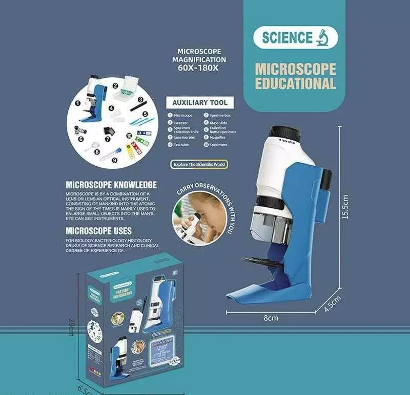 Мікроскоп 2228 A (36) збільшення 60-180х, інструменти, зразок, скельця, підсвічування, в коробці