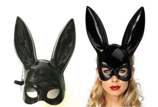 Полумаска с ушами плейбоевского кролика изготовлена в стиле унисекс и идеально подойдет скромной домохозяйке и строгому руководителю. Она изготовлена из качественного пластика. В отличие от маски зайца из кожи за ней легко ухаживать.