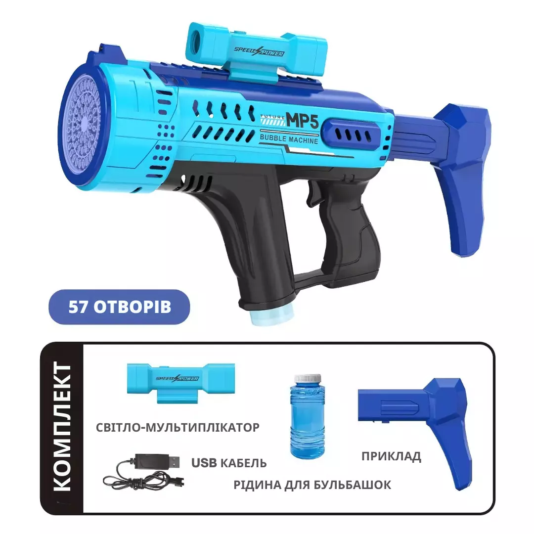 Комплектація: пістолет для мильних бульбашок, світловий