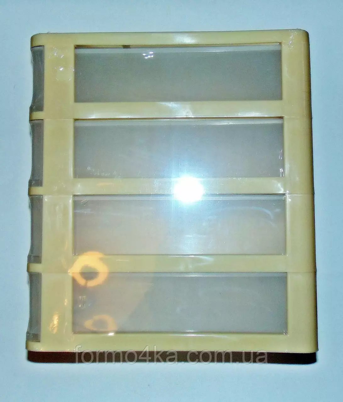4 выдвижных ящика одинакового размера 240х350мм высотой 8см