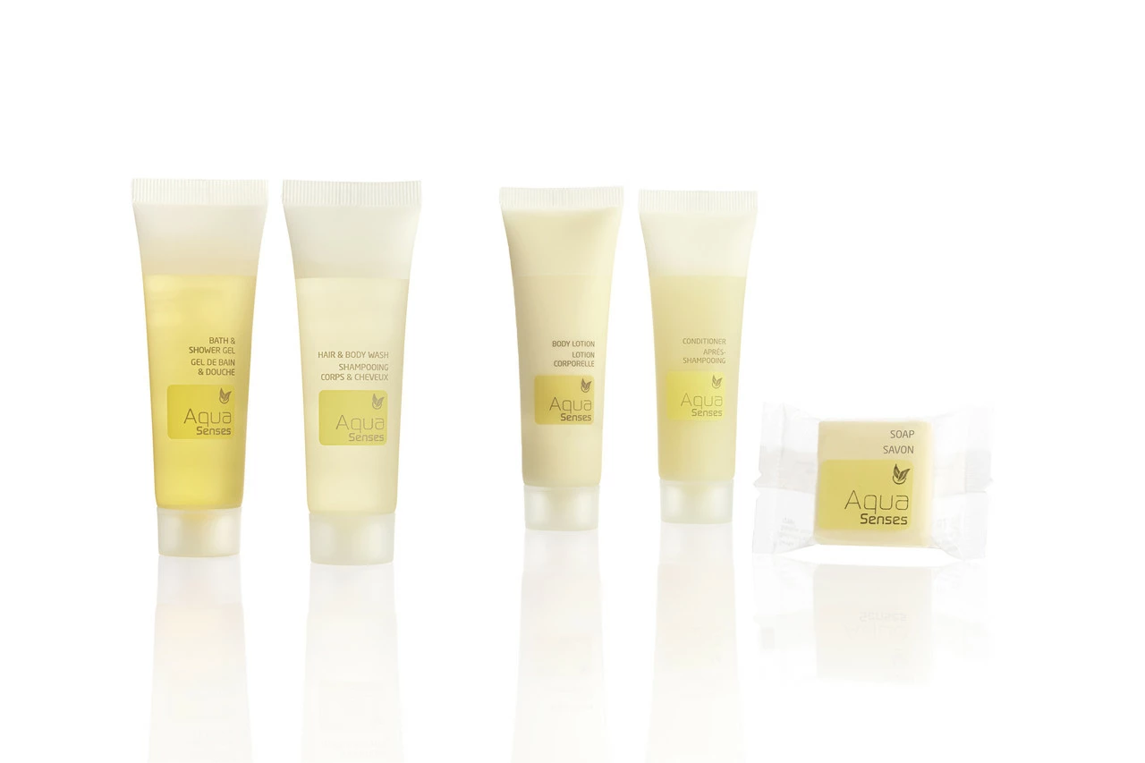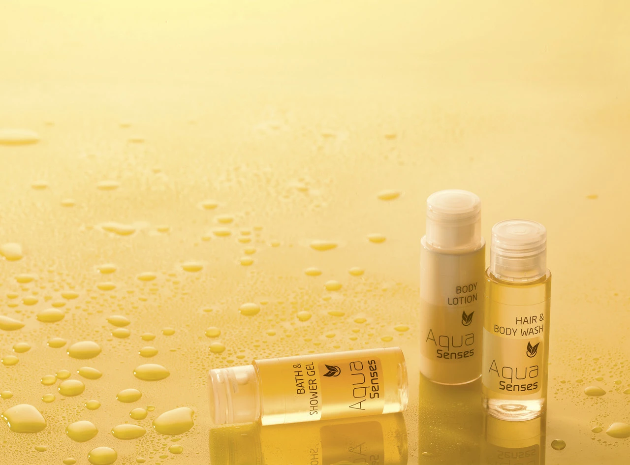 Это восхитительно, мерцающая золотом линия ухода за телом на водной основе со свежим ароматом очаровывает чувства и гарантирует, что кожа будет выглядеть и чувствовать себя здоровой каждый день. Просто дайте вашим гостям насладиться «своим временем» - с AQUA SENSES
