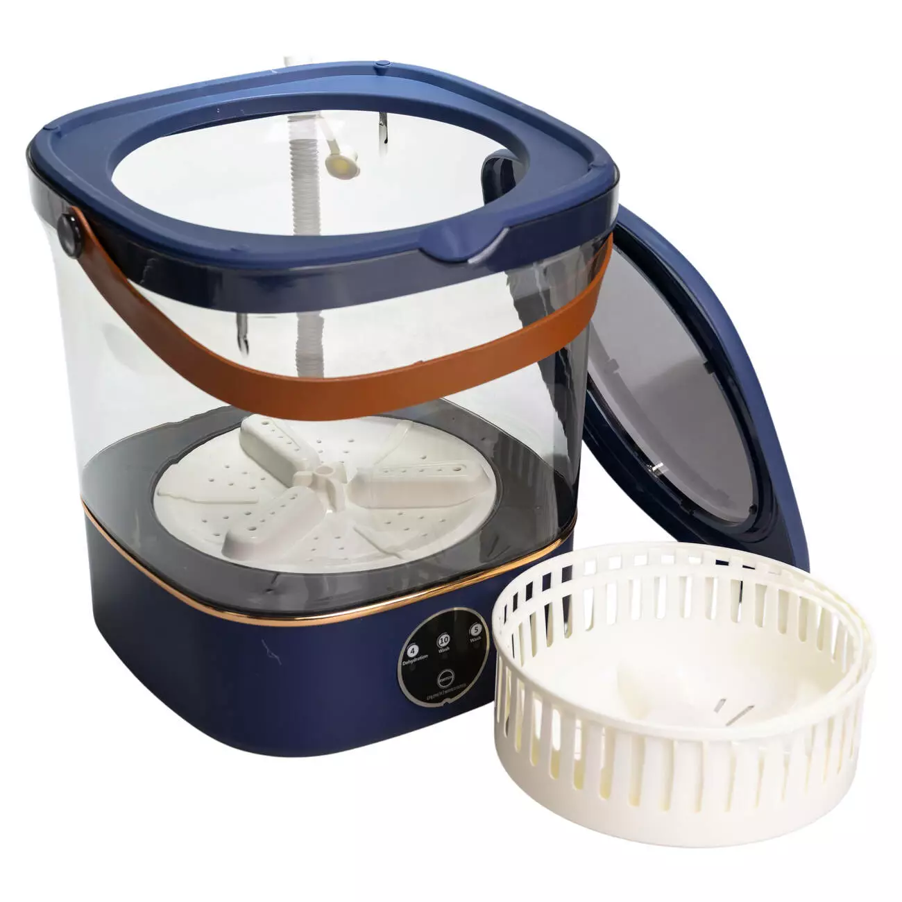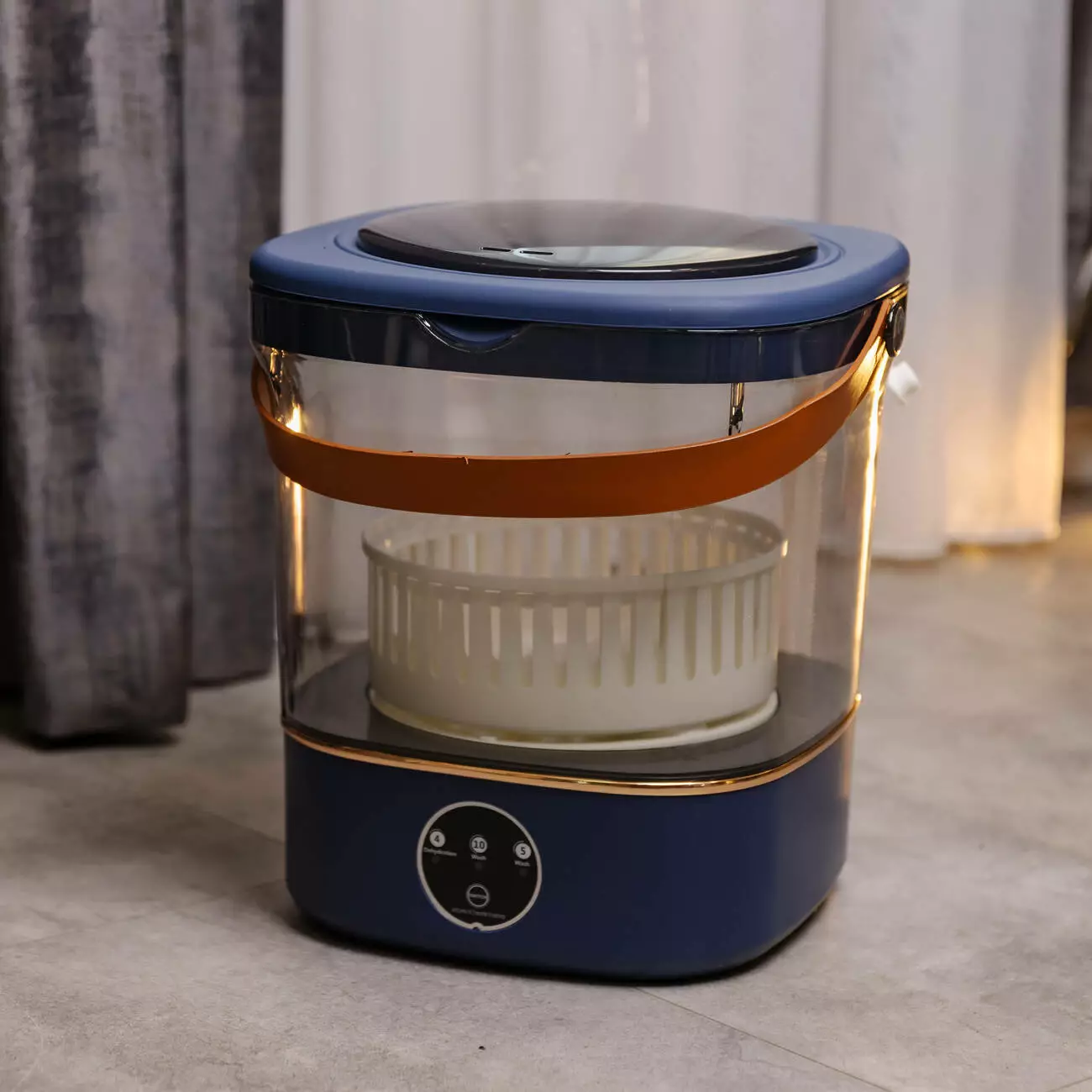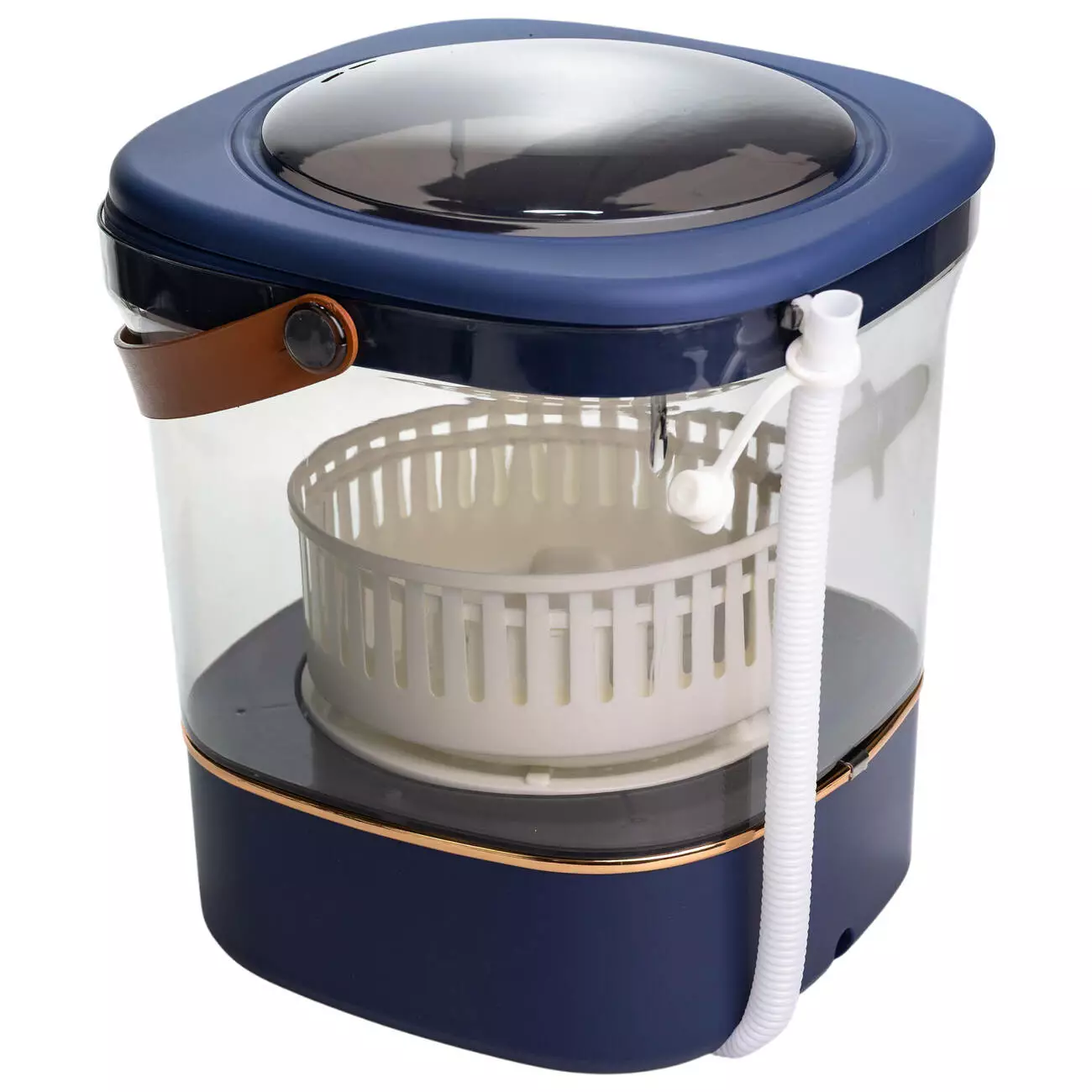 Портативність підсилює зручна верхня ручка для перенесення, а також компактний розмір, який дозволяє зберігати пральну машину навіть у невеликому просторі. Знімний зливний кошик додає зручності при очищенні. Ця міні-модель ідеально підійде для прання нижньої білизни, дитячих речей, носових хустинок або легкого одягу — всюди, де потрібна простота й мобільність.