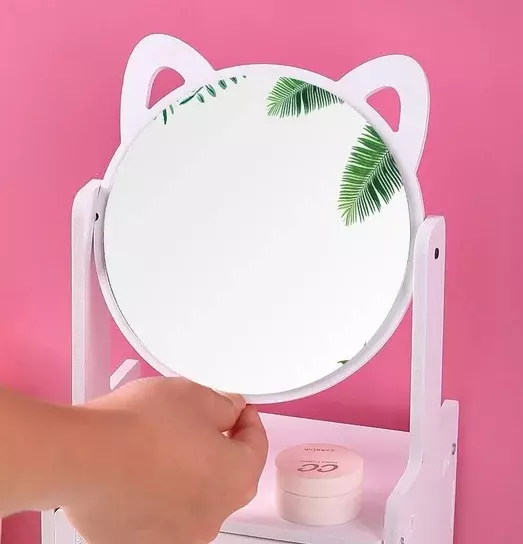 зеркало диаметром 15см удобно для нанесения макияжа и ухода за