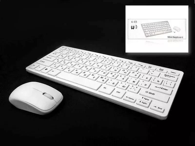 клавіатури з плоскими розділеними клавішами і міні-миші. Простий,