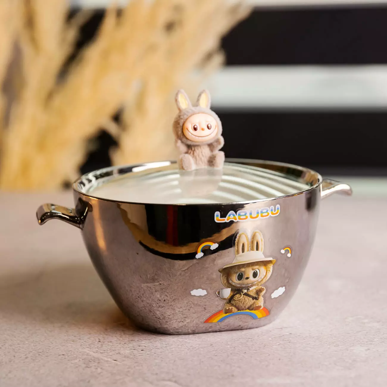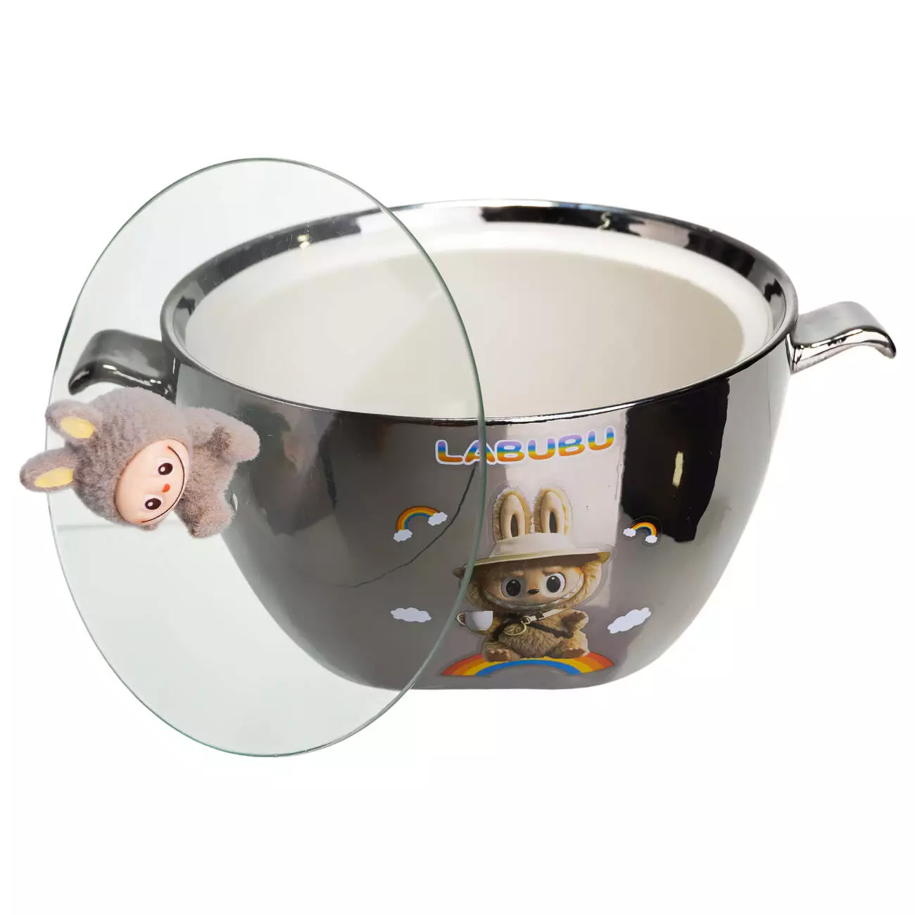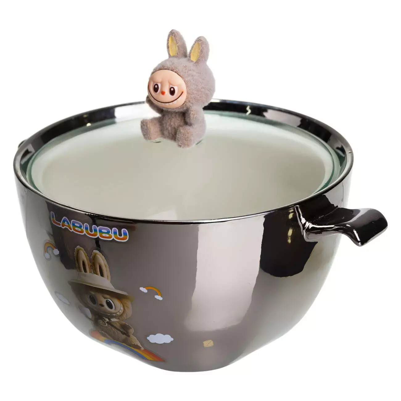 Компактна та містка порцелянова миска з кришкою – ідеальний варіант для подачі локшини, супу, каші або інших страв. Оригінальний дизайн робить миску чудовим подарунком для дітей та шанувальників LABUBU.