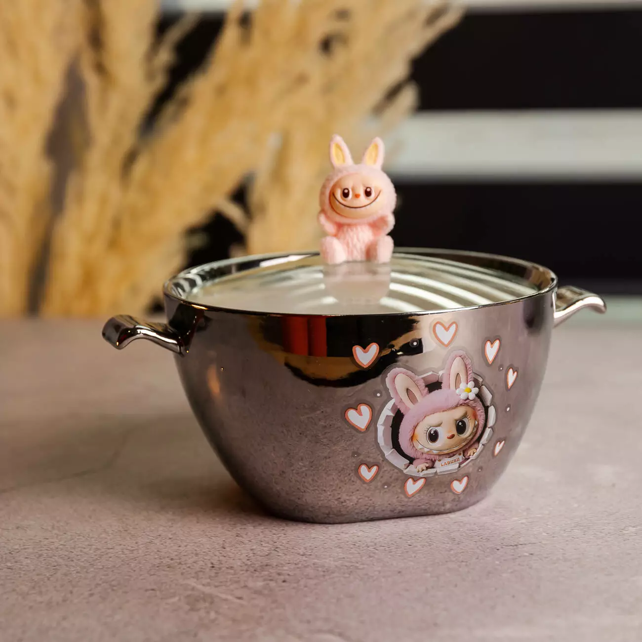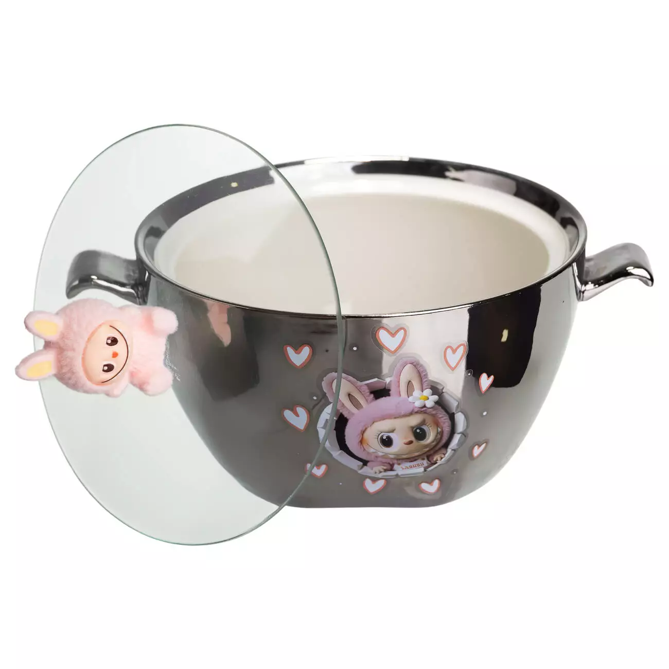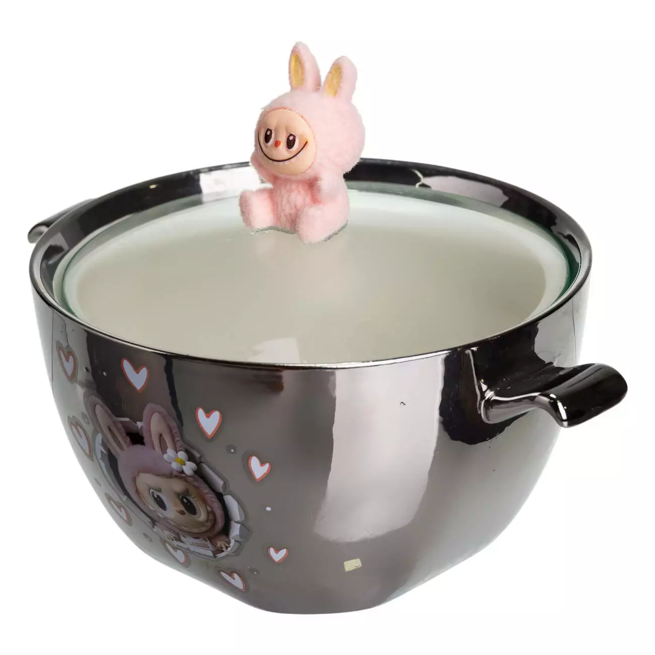 Компактна та містка порцелянова миска з кришкою – ідеальний варіант для подачі локшини, супу, каші або інших страв. Оригінальний дизайн робить миску чудовим подарунком для дітей та шанувальників LABUBU.
