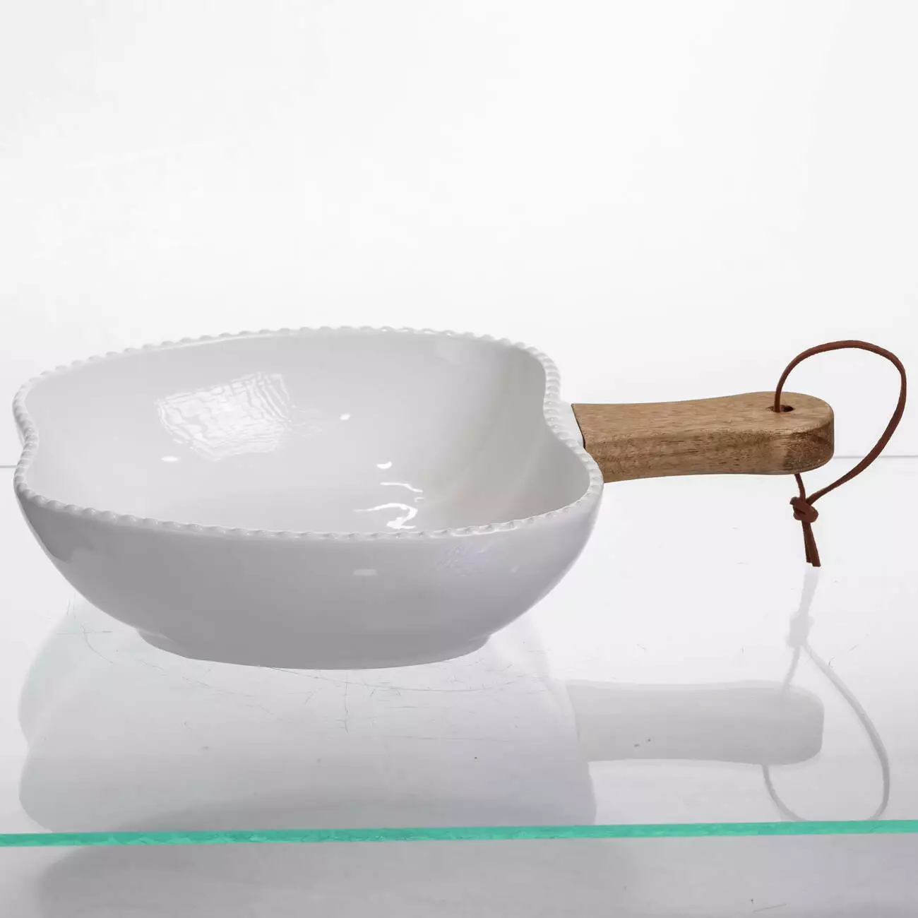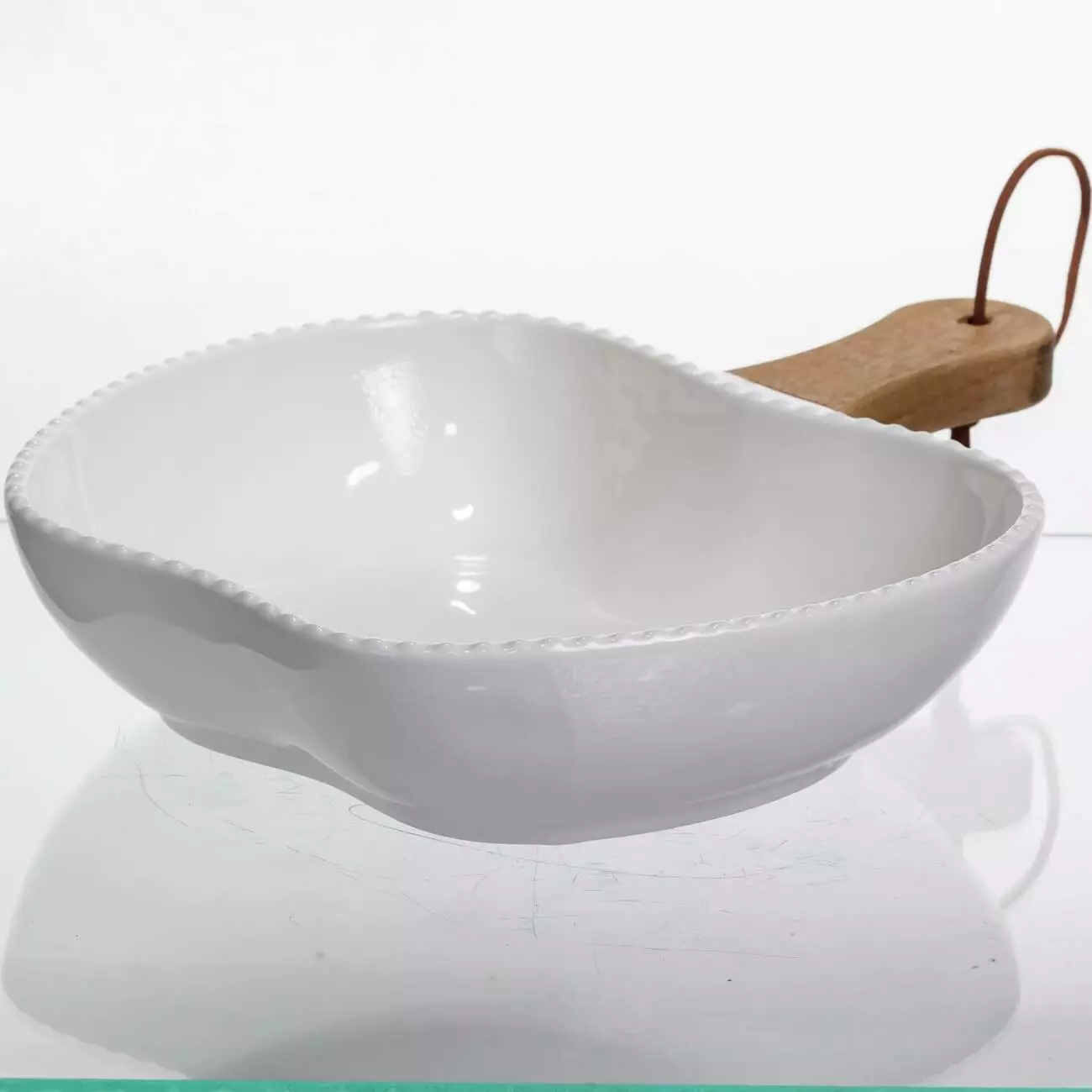 Миска сервірувальна порцелянова 700 мл з дерев'яною ручкою, білий