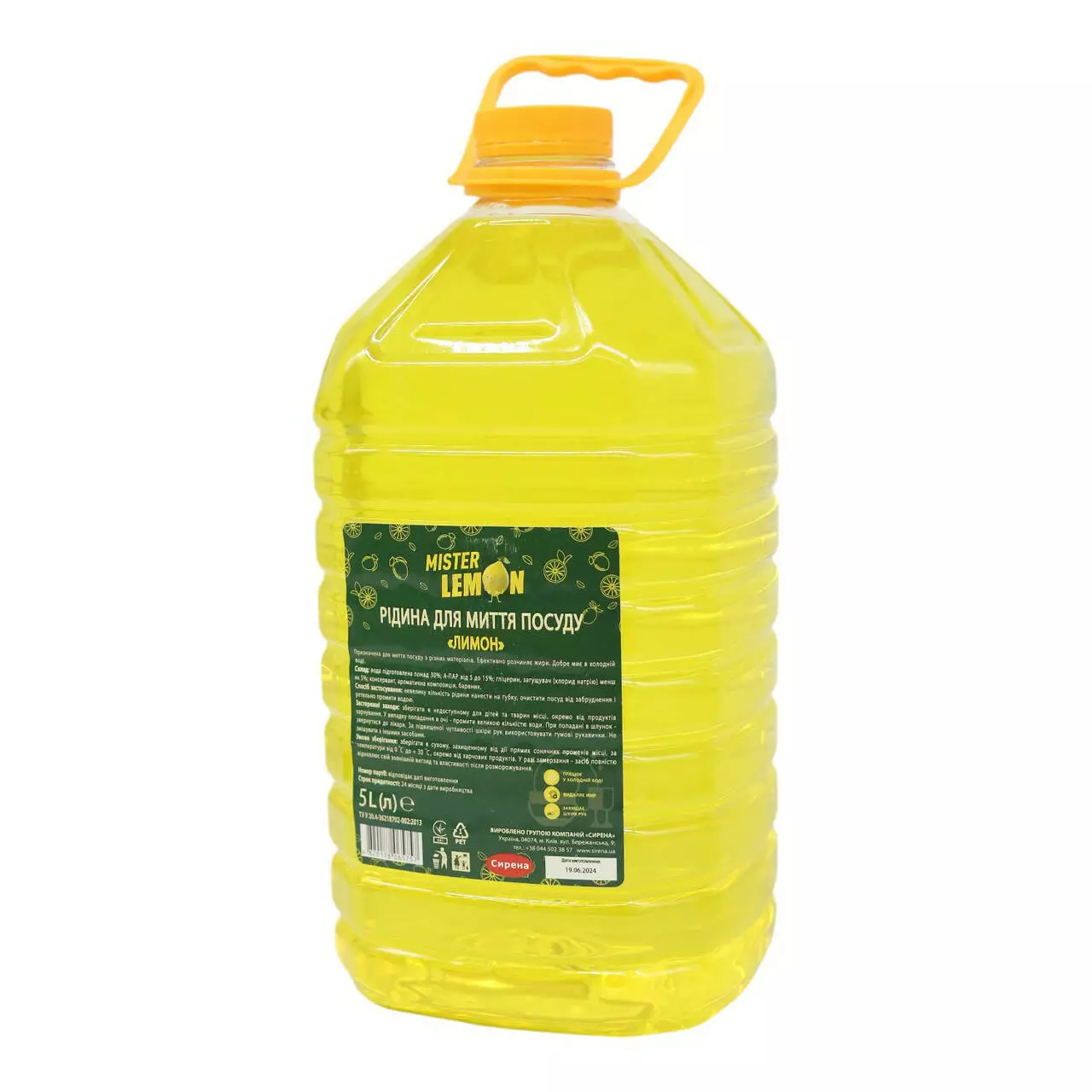 Засіб для миття посуду Mister Lemon "Лимон" об'ємом 5 л забезпечує