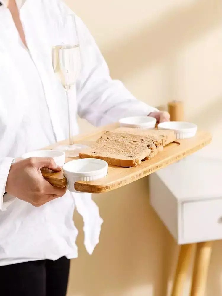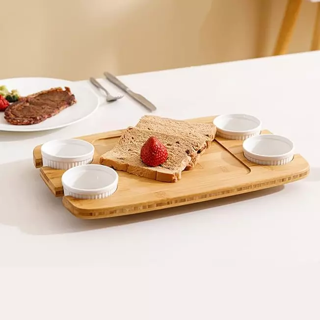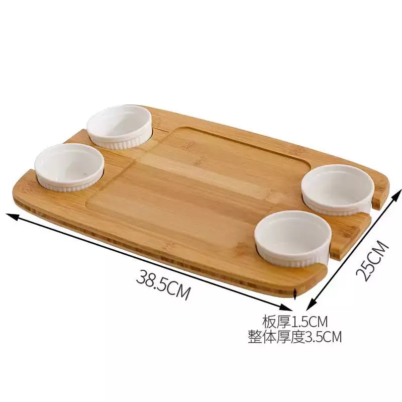 Комплектація: бамбукова дошка, 4 керамічні соусники, 4 керамічні