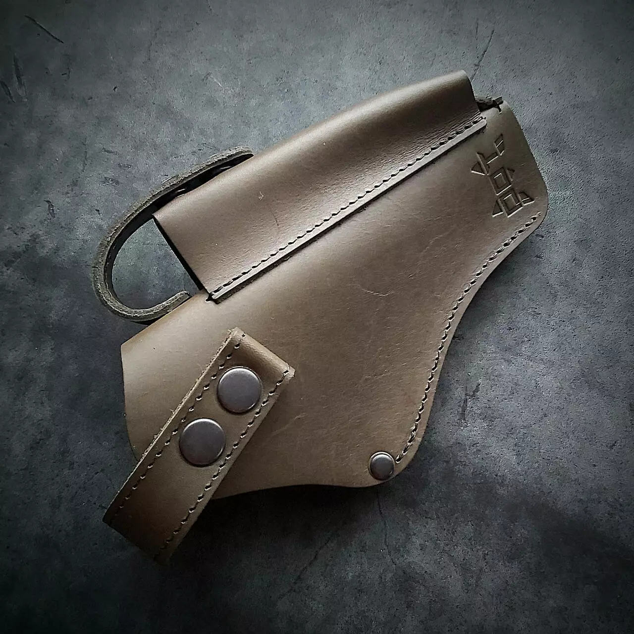 Кобура поясна під АПС. Виконана з щільної натуральної шкіри. Колір олива