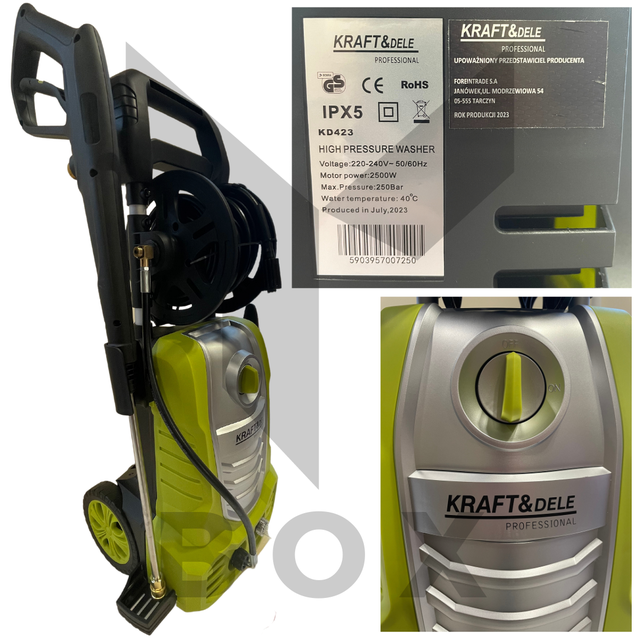 by Kraft&Dele модель KD423 - це універсальний інструмент, який використовується для виконання різних завдань з очищення та догляду. Він використовується для очищення фасадів, терас, садових меблів, автомобілів і т.д. Легка конструкція і кабель живлення довжиною 5 м роблять роботу з машиною підлогомийної нашої марки приємною і легкою.