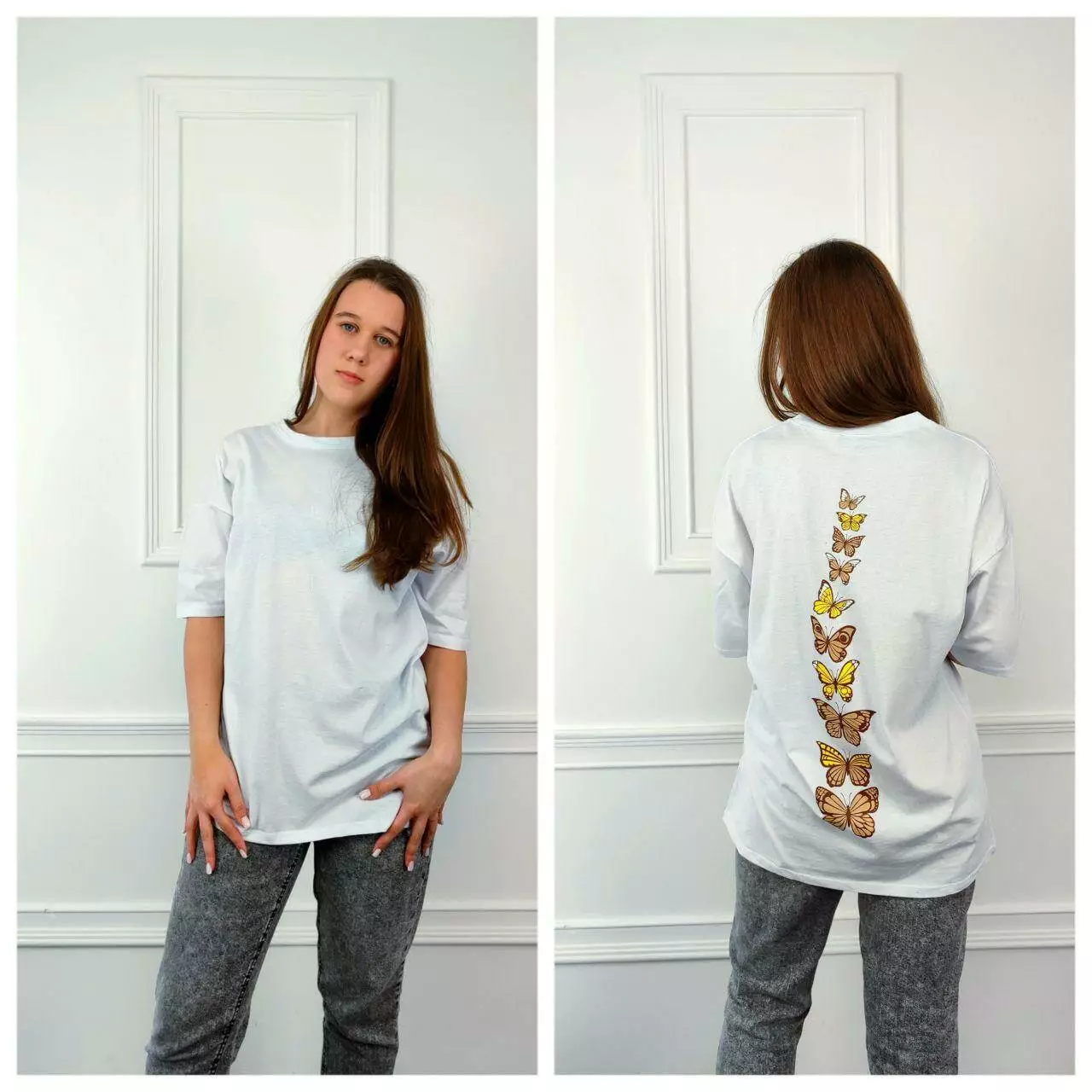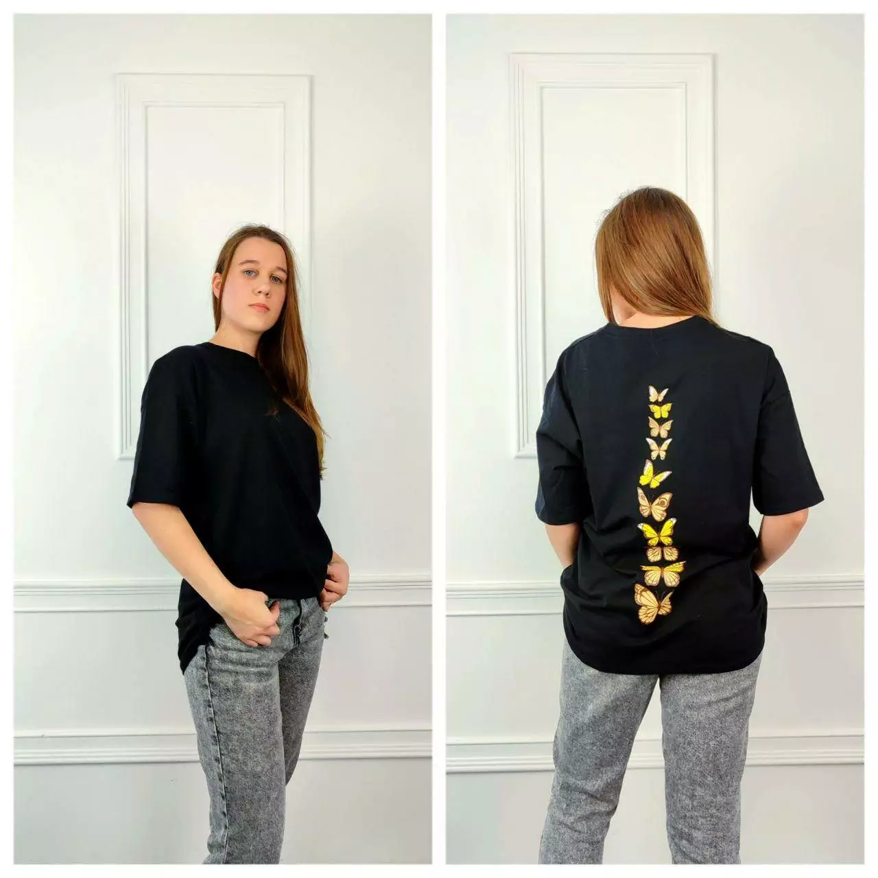 Молодежная женская футболка OVERSIZE 44-48 бабочка Чёрный