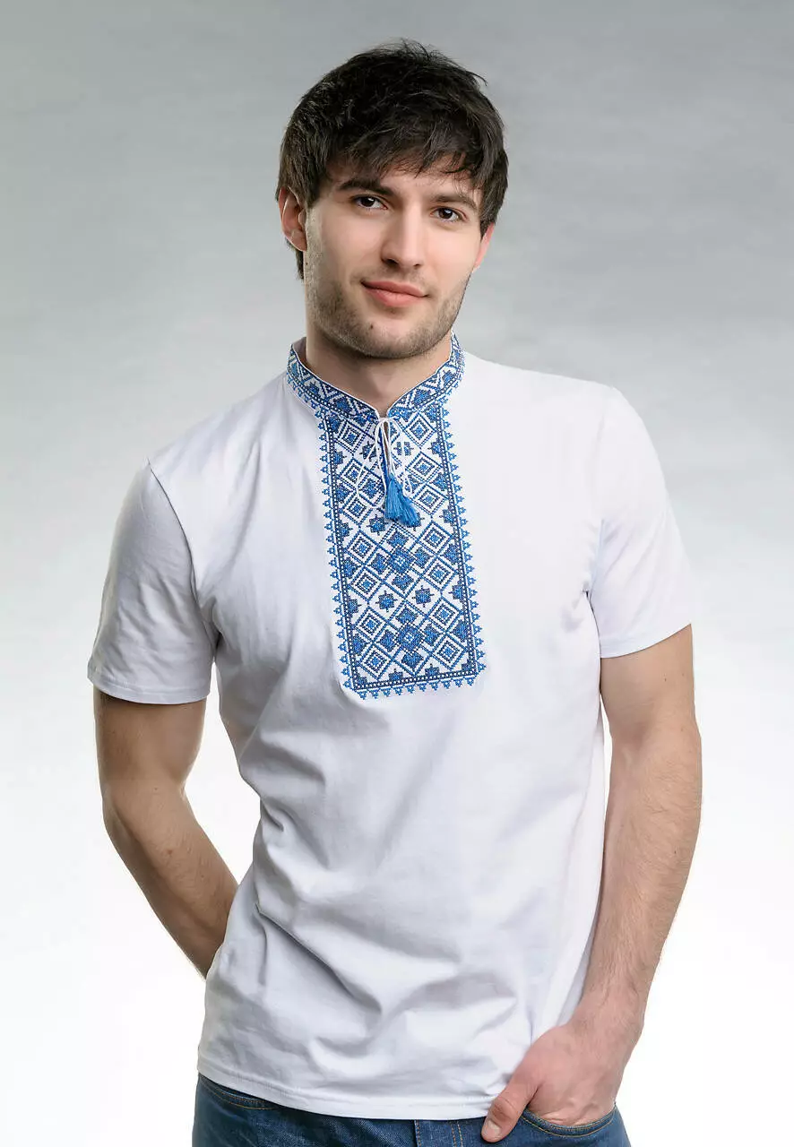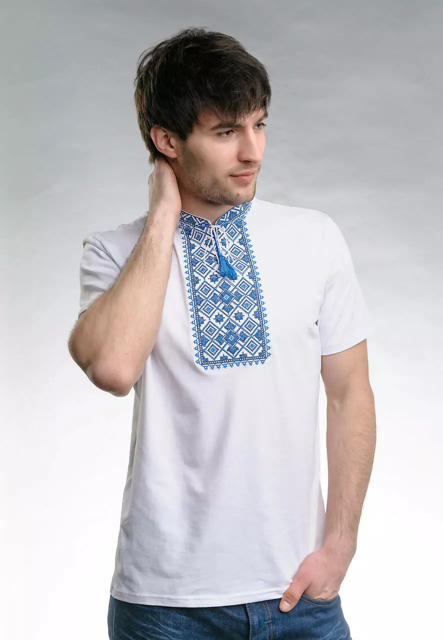 Така модель чудово доповнить повсякденний образ. Вона вразить Вас своєю якістю та деталізованим візерунком. Ніжно-блакитні відтінки ниток використовувалися при машинній техніці вишивання. Фахівці «Melanika» створили цю футболку із високоякісної бавовни.