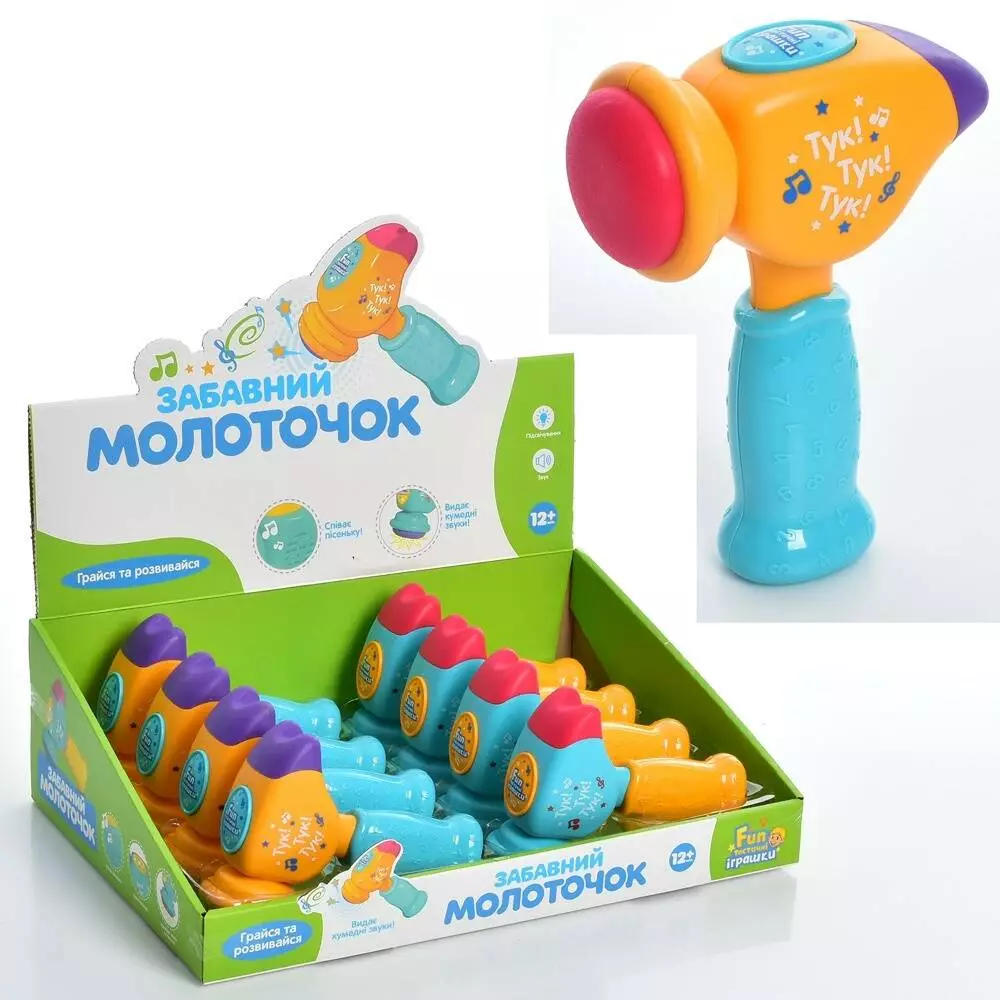 Фотография 1 товарной позиции интернет-магазина детских игрушек www.smarttoys.com.ua Молоточок FT 0050 муз. (укр.-фрази, пісня), світло, бат., 8 шт. (2 кольори) в диспл., 38-26,5-26 см.