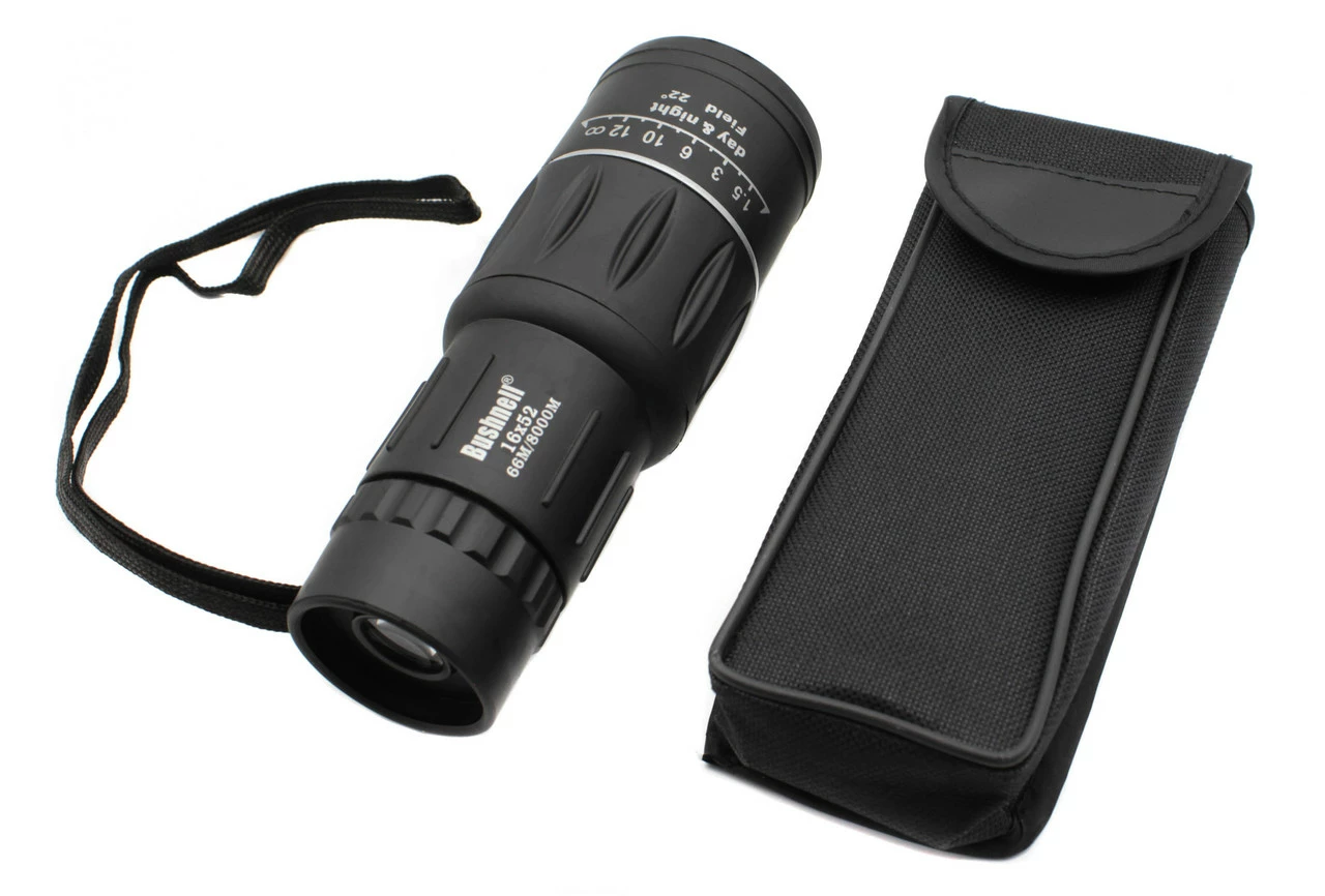 Монокль от фирмы Bushnell порадует вас прекрасным качеством линз и корпуса. Отлично подойдет для походов, охоты, рыбалки. Бинокль оснащен качественными светочувствительными линзами. Корпус выполнен из ударопрочного пластика и прорезинен для удобного хвата. В комплекте поставляется нейлоновый чехол для удобной транспортировки и ремешок для бинокля. Бинокль незаменимый помощник охотника, рыболова и туриста. Благодаря качественной оптике можно выследить зверя, вычислить активность рыбного места, проверить местность на наличие изменений. Бинокли часто покупают для страйкбола. Бинокль Bushnell 16х52 имеет диаметр линз 50 мм, увеличивает в 20 раз, поле зрения: 100м x 1000м (ширина видимого поля x расстояние до объекта). Прорезиненный корпус защищает оптику от влаги и от ударов. В руках не скользит, удобно носить на шее. Преимущества бинокля Bushnell 16х52 : Нужная вещь для туриста, охотника, рыболова Эргономичная форма Водонепроницаемый корпус Часто покупают страйкболисты Бинокль можно сложить для большей компактности.