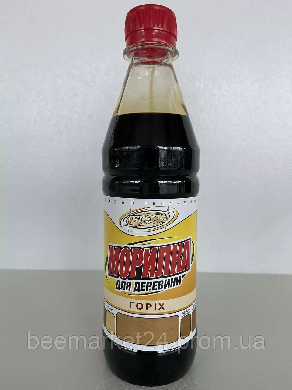 нанести морилку в 1-3 шари тампоном, валиком, пензлем або