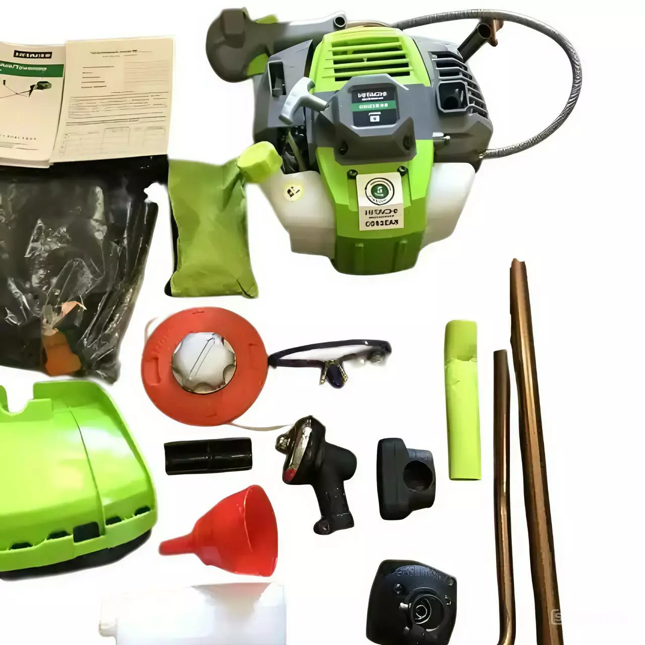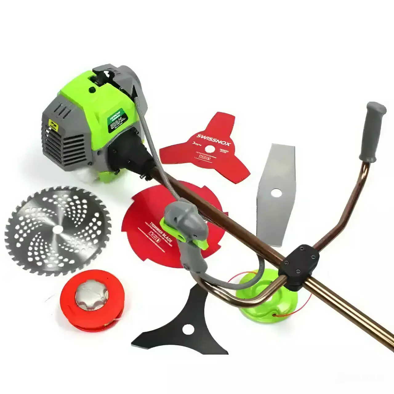 волосінню для м'якої трави, металевий ніж і пиляльний диск для