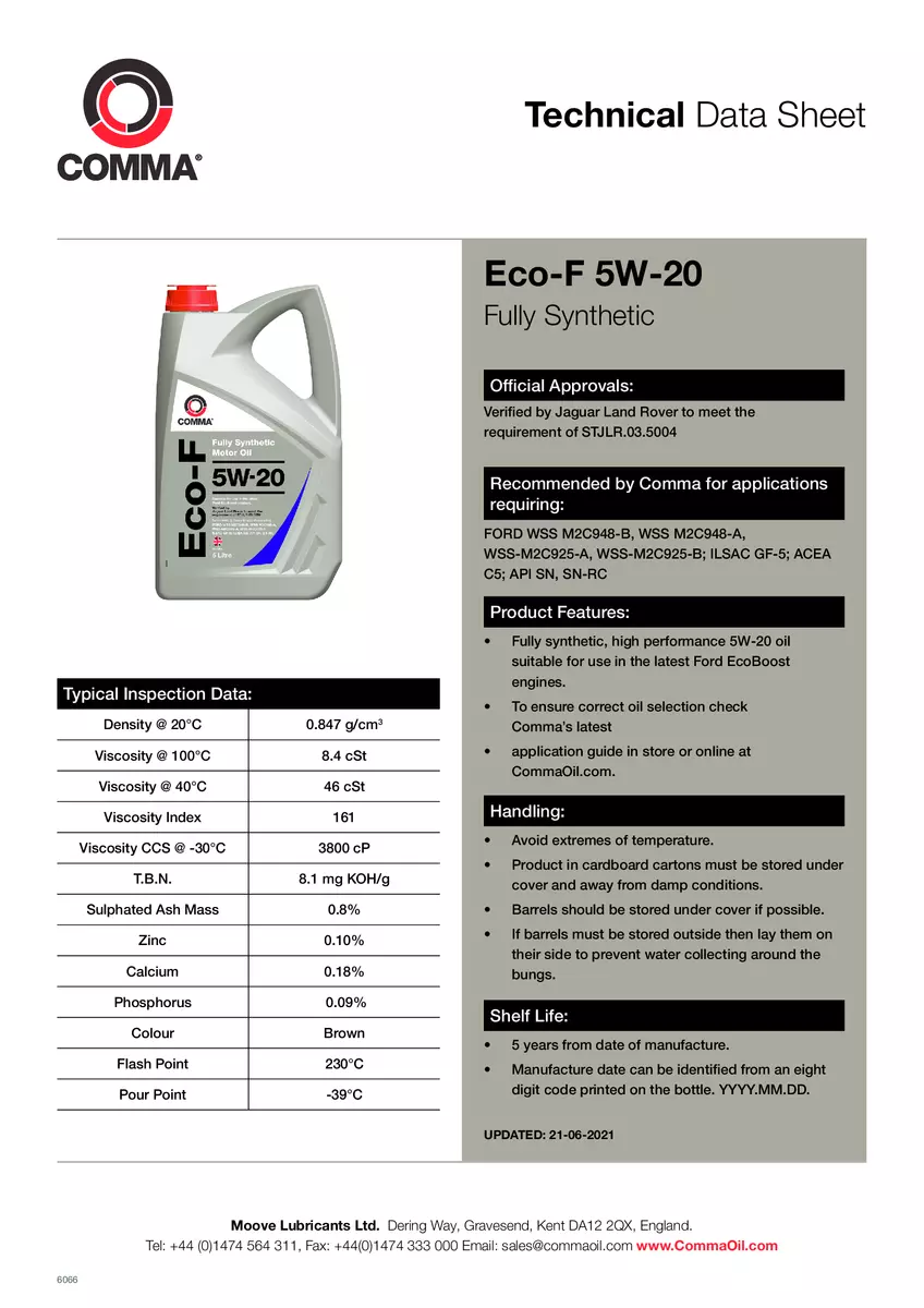 Моторное масло Сomma ECO-F 5W-20 API SN, SN-RC; ACEA C5 1л (12шт/уп)