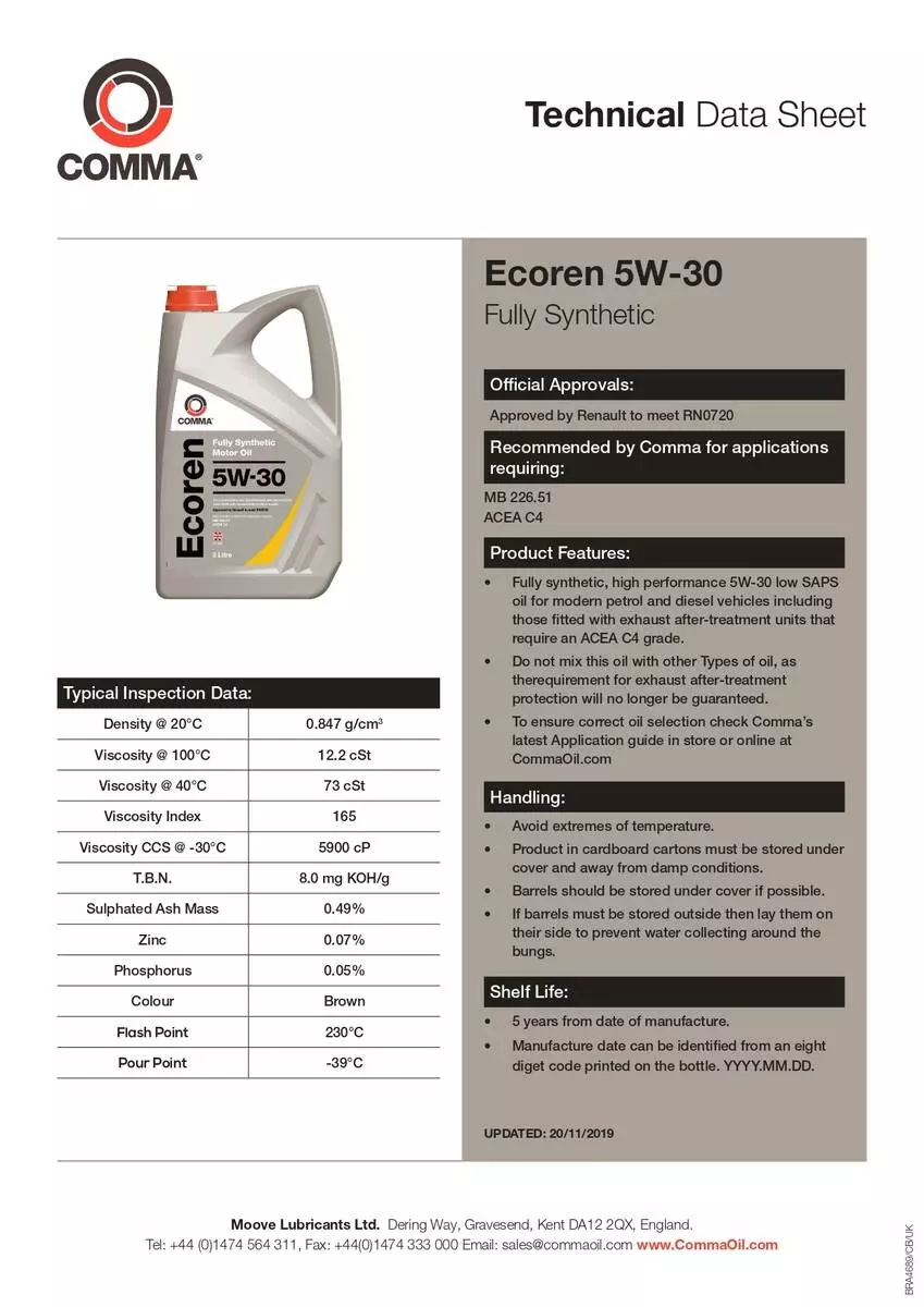 Моторное масло Сomma ECOREN 5W-30 ACEA C4 5л (4шт/уп)