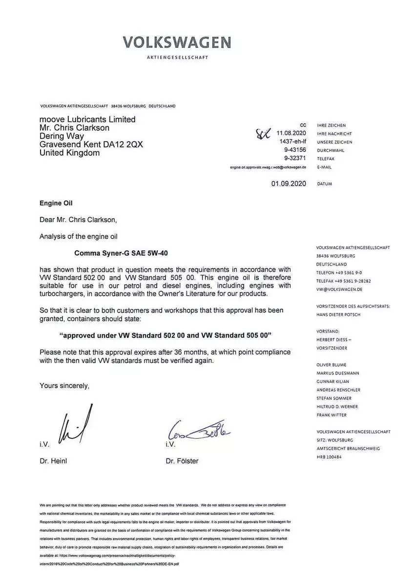 • Допуски ОЕМ: VW 502 00, VW 505 00, MB 229.3