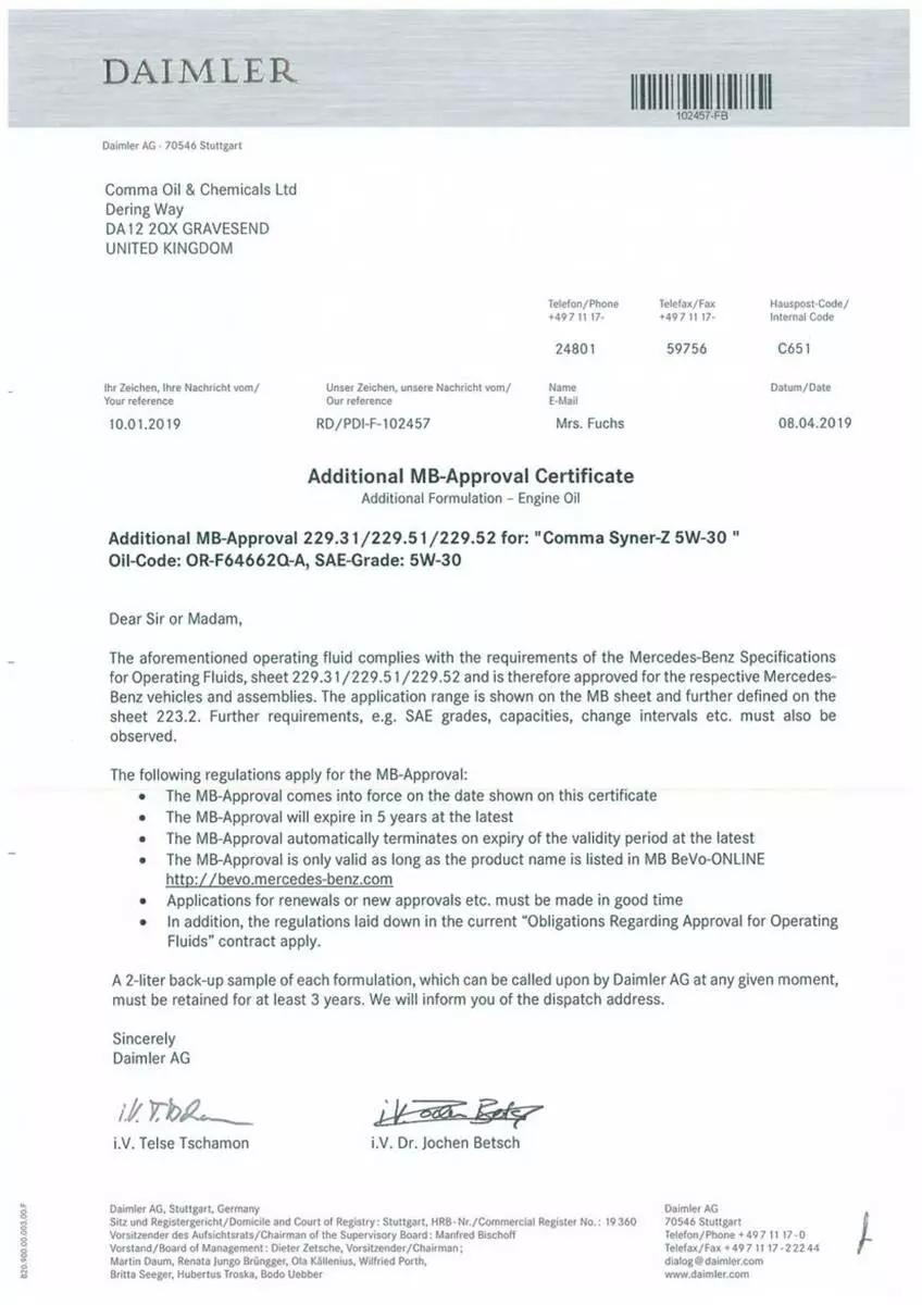 • Допуски ОЕМ: MB 229.31,MB 229.51,MB 229.52