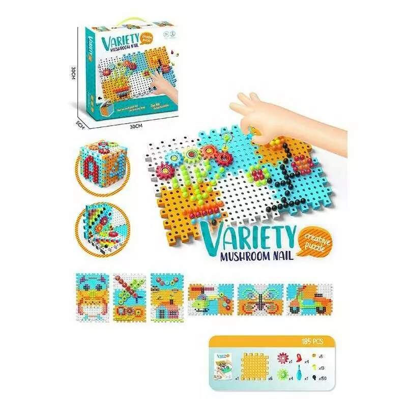 Мозаїка 022-1 A (48/2) 110 пластикових елементів, основа з отворами, інструменти, в коробці
