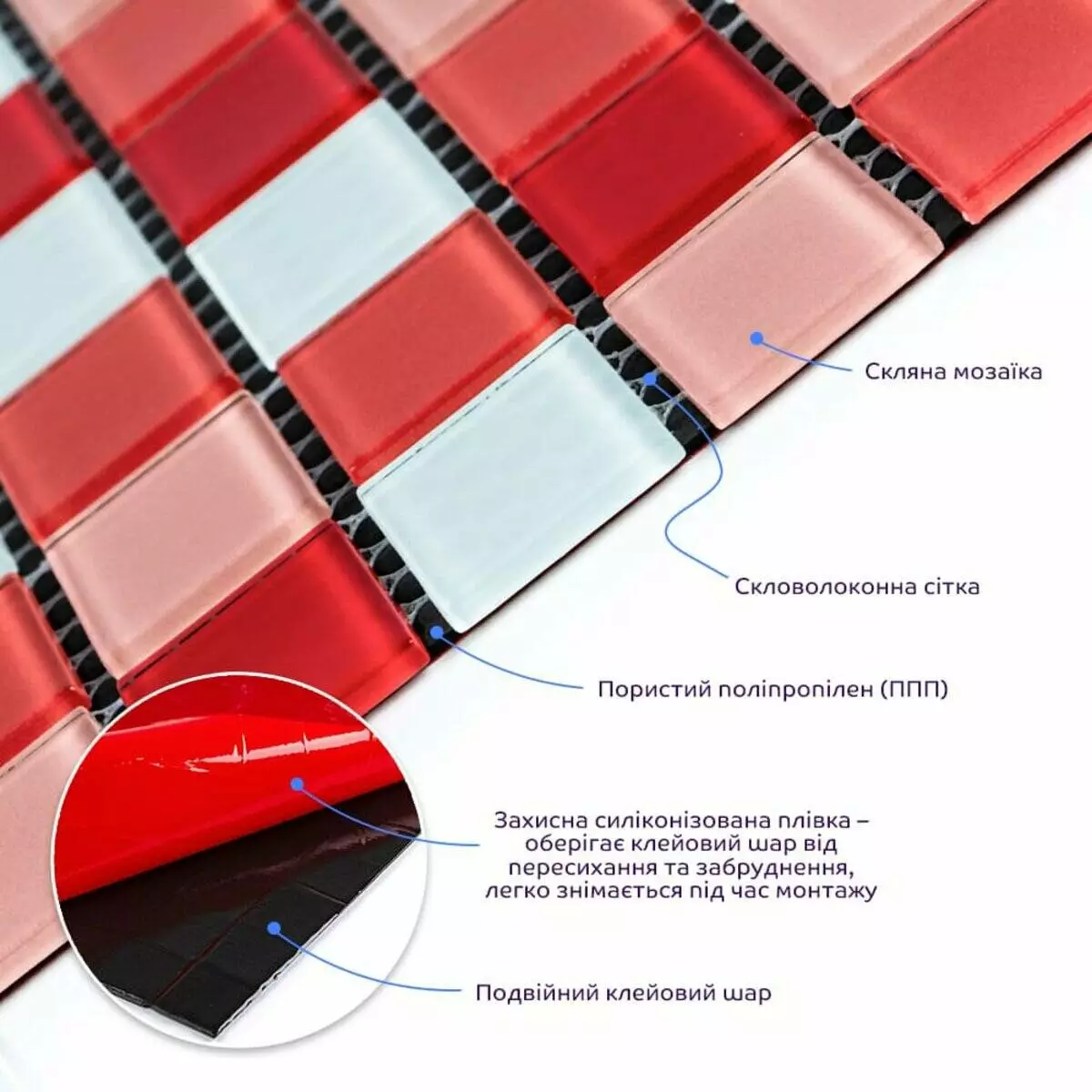 • Декоративні можливості: скляна плитка доступна в різних кольорах та дизайнах. Це дозволяє вибрати плитку, яка найкраще підійде до інтер'єру вашого приміщення. Якісна альтернатива кахлю чи керамічній плитці.