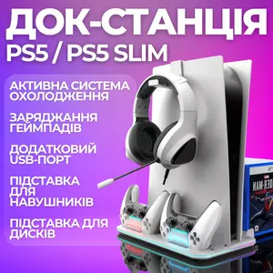 Многофункциональная подставка для джойстиков PS5 / PS5 Slim, наушников и дисков с охлаждением и магнитной зарядкой