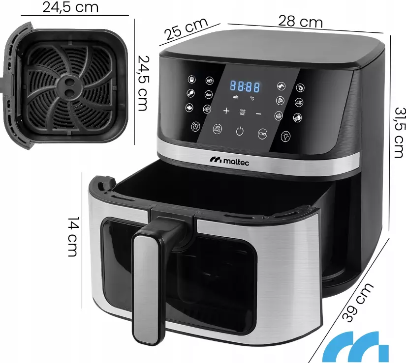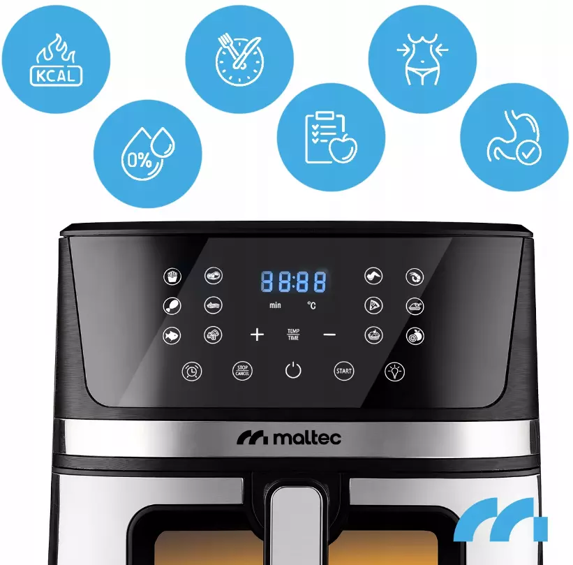 Фритюрница без жира MalTec AirFryer1800W-7L - это здоровый способ приготовления легкой и вкусной пищи. Благодаря технологии высокоскоростной циркуляции горячего воздуха прибор позволяет жарить чипсы, курицу, рыбу, овощи и даже выпекать пироги без использования масла.