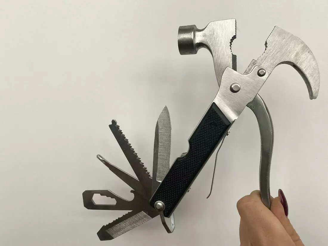 Багатофункціональний інструмент включає молоток/тирсу/викрутку/відкривалку,
