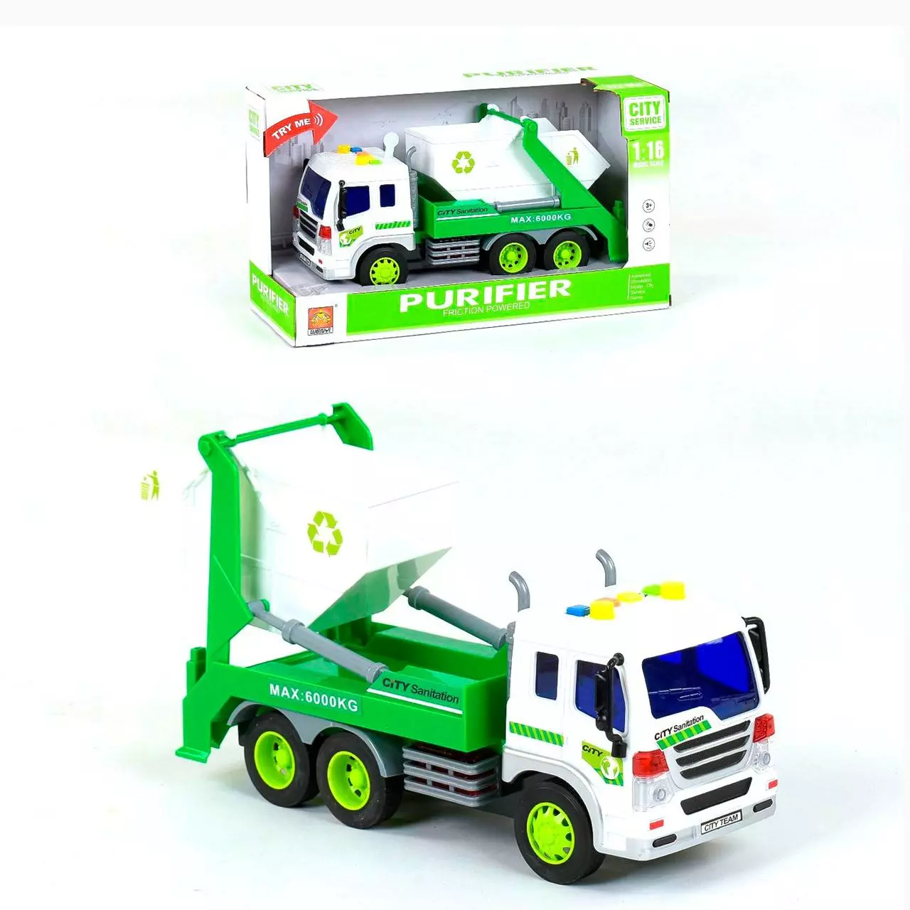 Мусоровоз Kimi представляет собой инерционную модель спецтехники.