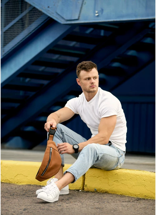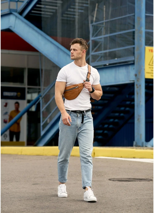 Сумочка из натуральной кожи на пояс, бананка Sambag - отличный