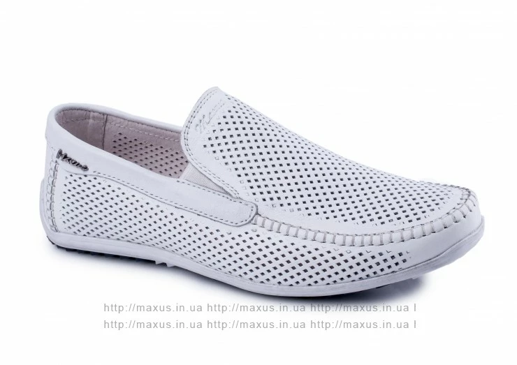Мужские летние мокасины Maxus. Модель F-2 кожа белый с перфорацией.