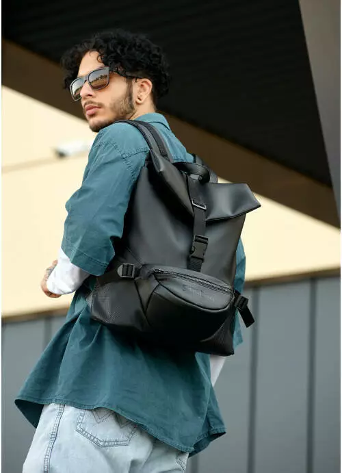 Спереди рюкзака есть два вместительных кармана и один с задней