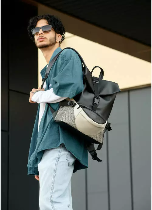 Спереди рюкзака есть два вместительных кармана и один с задней