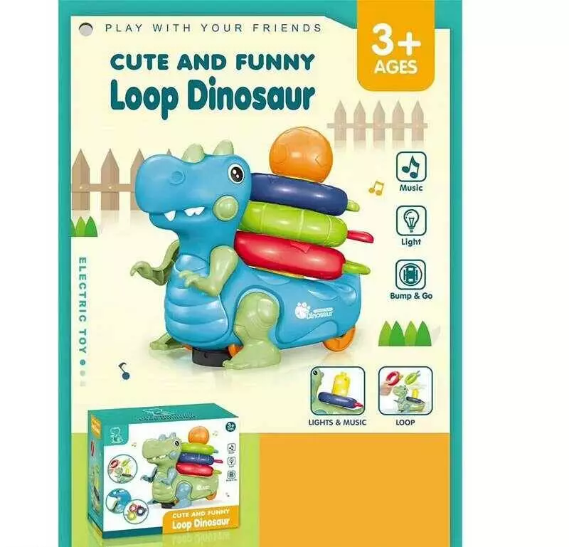 Музична іграшка 2324 (48/2) “Динозавр”, мелодії, підсвічування, колесо вільного ходу, пірамідка, прорізувач, в коробці
