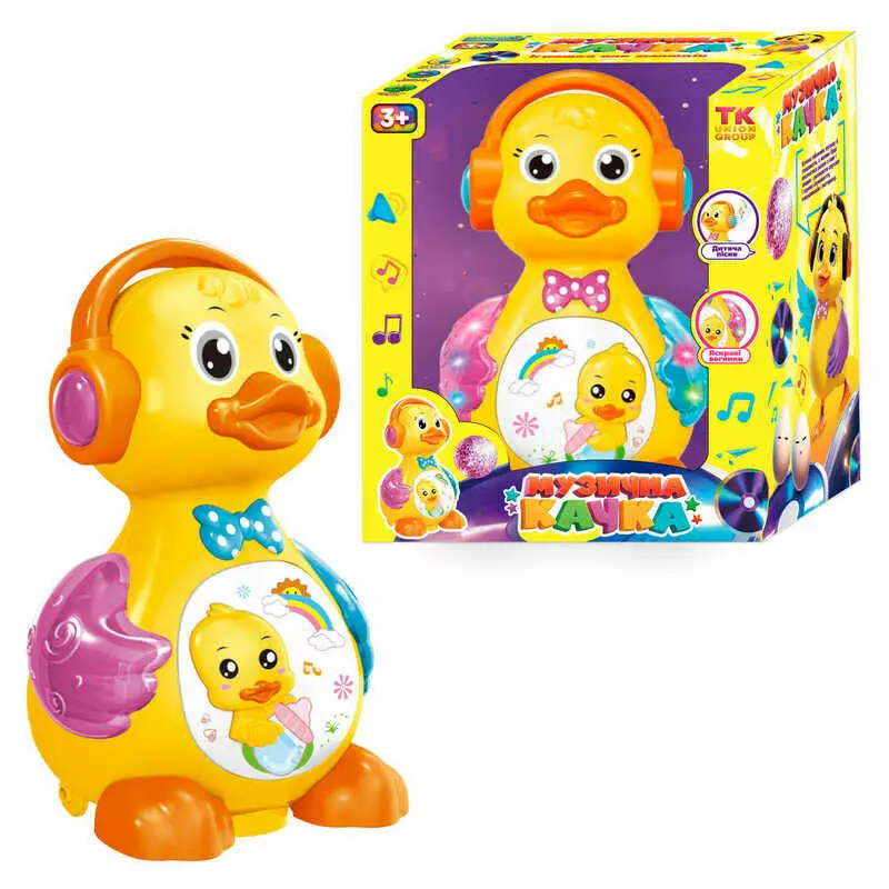 Музична качка 48510 / 0619 (40/2) "TK Group", ОЗВУЧУВАННЯ УКР. МОВОЮ, світло, звук, колесо вільного ходу, несе яйця, в коробці