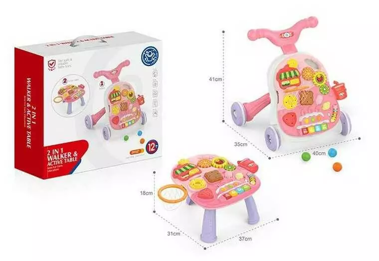 Музична каталка НЕ 0815 (6) 2в1, інтерактивний столик, підсвічування, музичне піаніно, сортер, баскетбольна сітка, у коробці