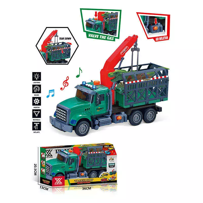 Спецтехніка 688-5 C (24) “Вантажівка з підйомником”, довжина 33 см, світло, звук, інерція, гумові колеса, висувна стріла, 2 динозаври, в коробці